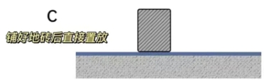 C.铺好地砖后直接置放在地砖铺好后,在上面置放挡水条,这是最方便省事的做法。挡水条和地砖之间用玻璃胶黏贴好,玻璃胶的选择十分重要,如果玻璃胶粘不牢,要经常涂胶,后期老化容易发霉,也可能使用的寿命不是很长易发生渗水漏水的情况,因此不大推荐这种方法。