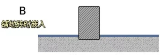 铺水泥沙浆时留一条槽,嵌入挡水条,之后对地面进行整体的地砖的铺贴,这种方式挡水的效果是最佳的,也不太容易产生渗水的问题。这种方式对挡水条的硬度要求比较高,需要两头的密闭性好。挡水条预埋嵌入到地面瓷砖以下的深度一般在15-20MM左右。
