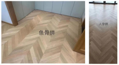 人字拼采用锁扣工艺,将公槽和母槽一正一反地扣一起,实现无缝拼接。