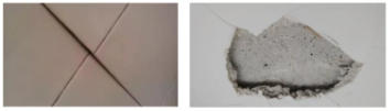 ■铺贴瓷砖未留缝或缝隙过细;瓷砖粘结剂批刮不均匀;瓷砖铺贴后未用力按压瓷砖或者用力不均,排气不充分,没有形成有效粘贴。
